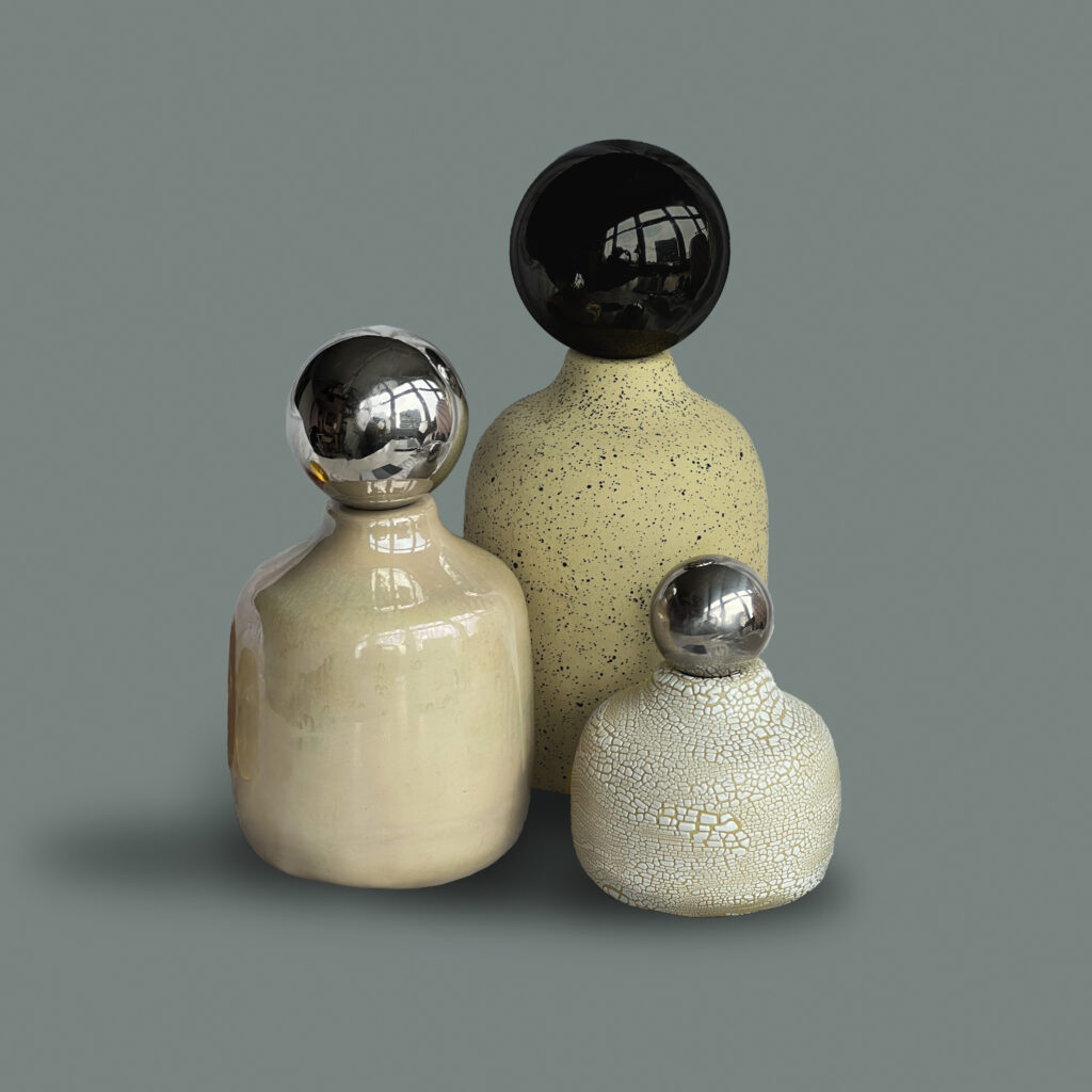 VIIE VASES are a collection of textured, archaic-looking vases designed to bring color and fascinating structure into any interior. This is the 2.0 series—a bold new edition featuring fresh colors, innovative glazes, and striking effects. The collection is all about experimentation, playing with surface textures by combining different clays with glass powders and other materials.